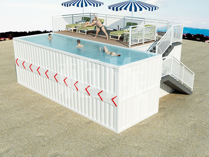 集裝箱泳池可以完全在工廠預(yù)制完成,占地小、造價低,適合庭院、海邊的度假地、以及其他公共游樂場所使用。